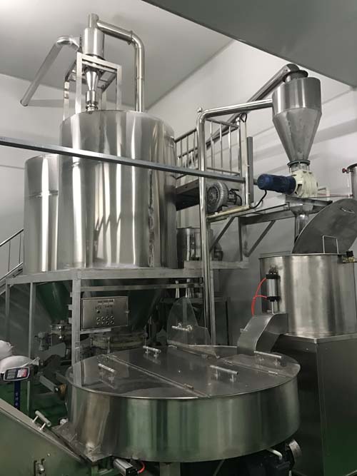 通過餳面機的不停攪拌使面團中的水分更均勻,并自動提升到下一工序, 設備可實現供料系統的自動控制;