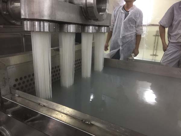為了延長鮮米粉的保質(zhì)期,包裝好的米粉需要進(jìn)行巴氏滅菌。 通過蒸汽完成最后的殺菌后進(jìn)入到冷卻。